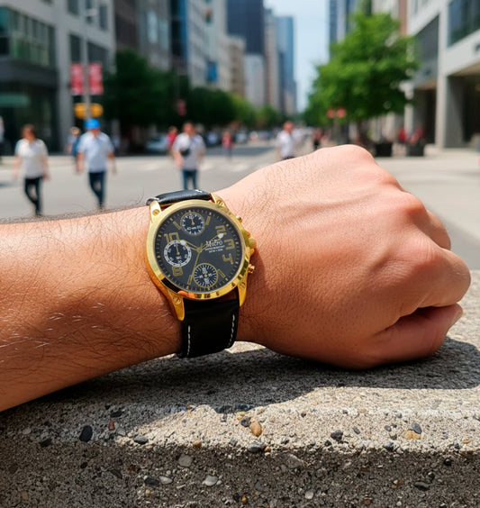 Reloj Micro Sport Gold – Esfera Negra, Caja Dorada