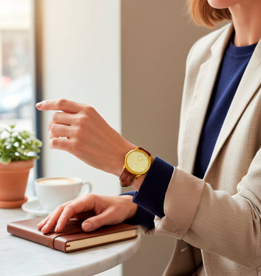 Reloj Micro Gold Classic – Caja Dorada, Correa Marrón y 3 ATM