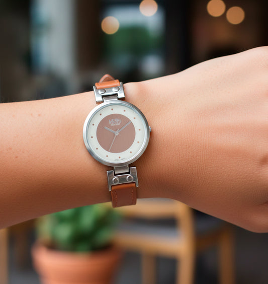 Reloj Micro Gold Vintage – Esfera Crema, Correa Marrón y 3 ATM