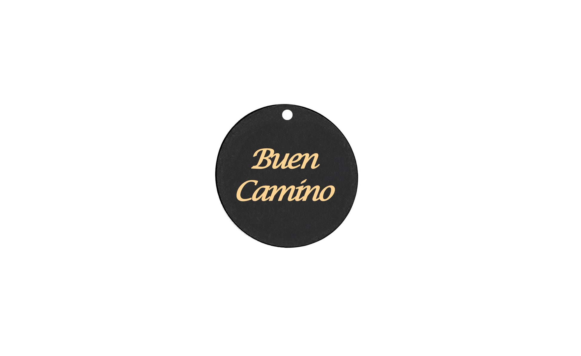Pulsera 7 nudos de nylon y disco de trigo con imagen de buen camino. Se entrega en un sobre explicativo de la pulsera.