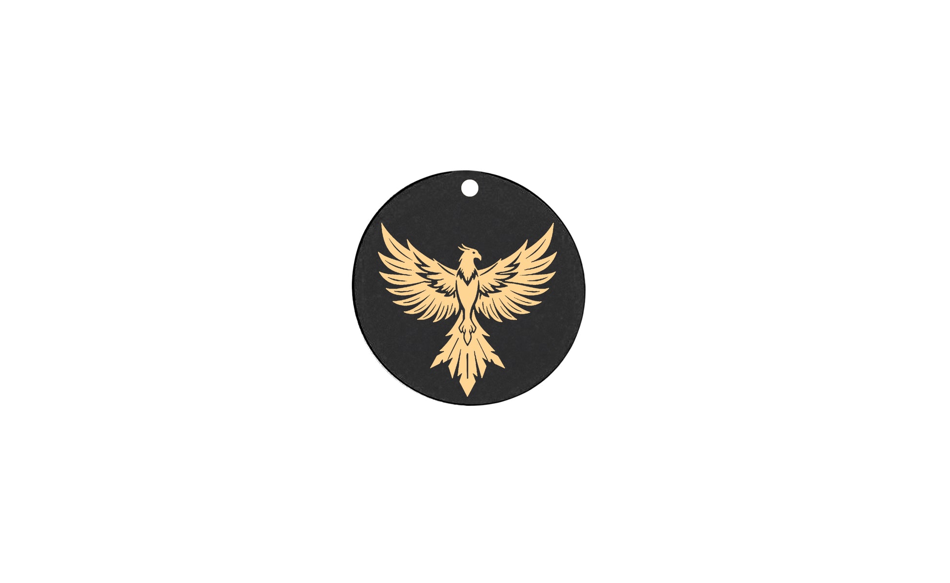 Pulsera 7 nudos de nylon y disco de trigo con imagen de fénix. Se entrega en un sobre explicativo de la pulsera.