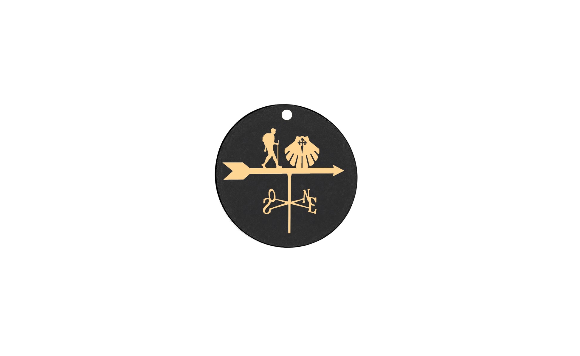 Pulsera 7 nudos de nylon y disco de trigo con imagen de la veleta del camino. Se entrega en un sobre explicativo de la pulsera.