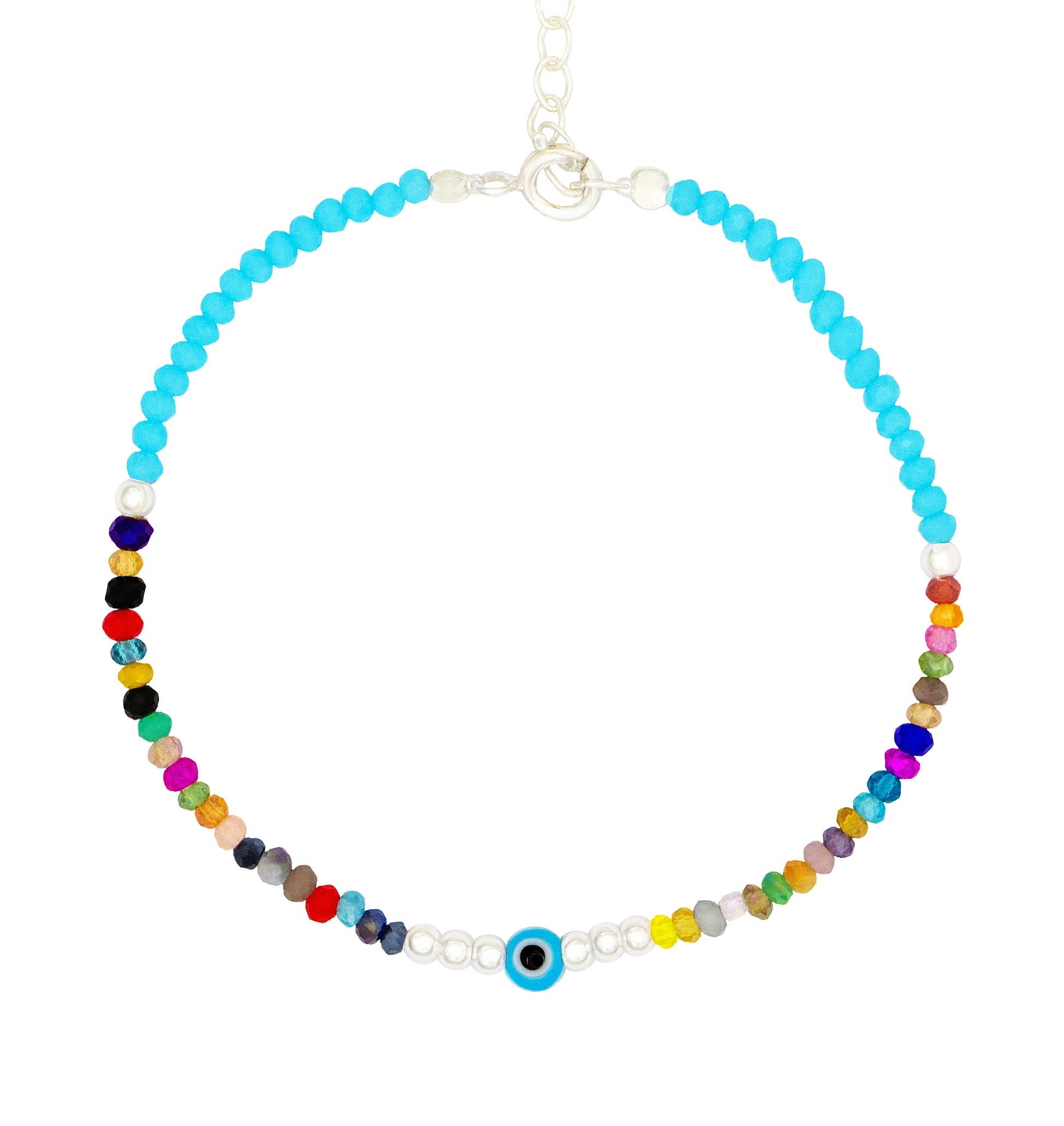 Pulsera cadena Elegant de plata de ley, 20 cm y circonitas con formas de color engarzadas