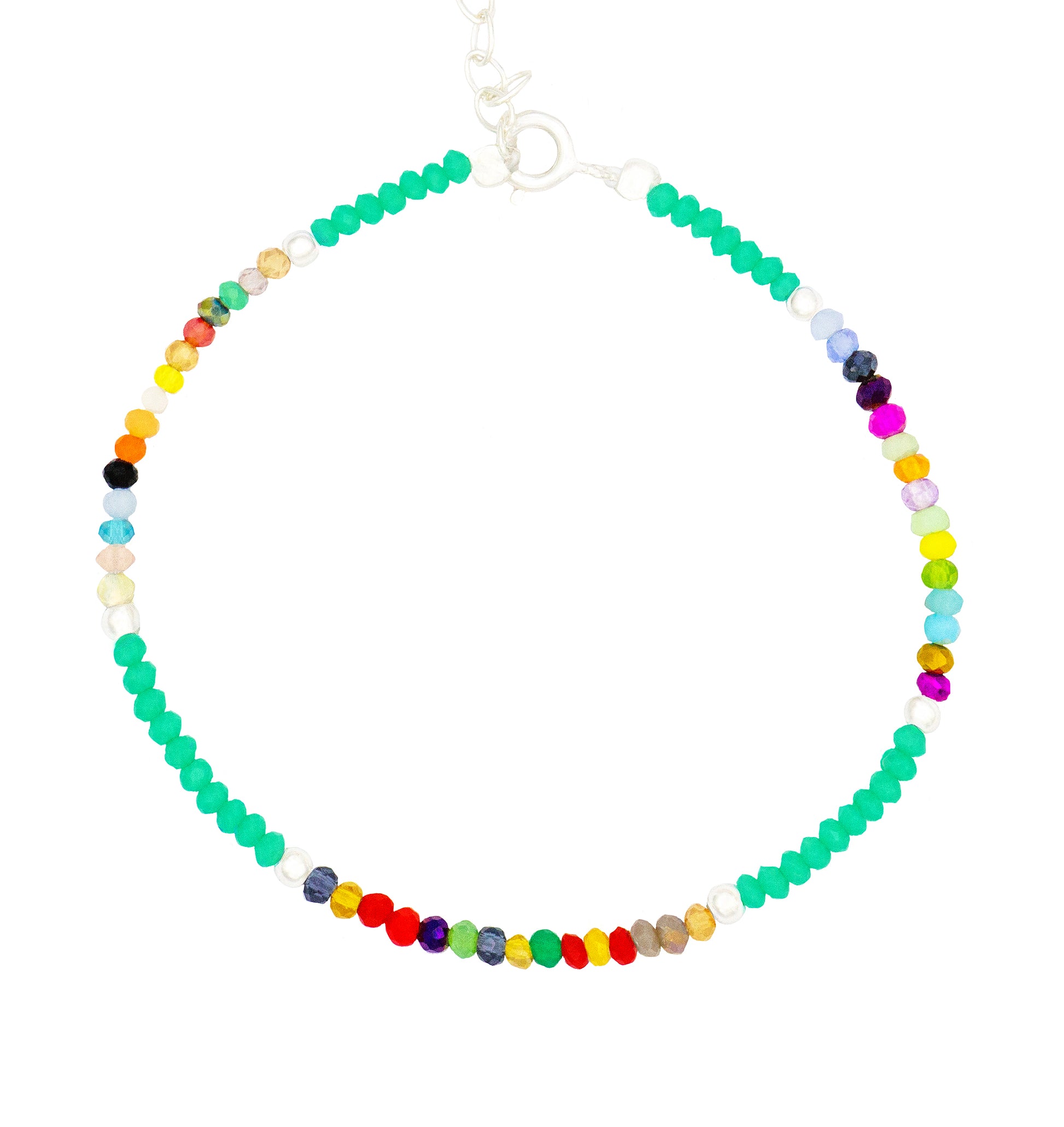 Pulsera cadena Elegant de plata de ley, 20 cm y circonitas con formas de color engarzadas