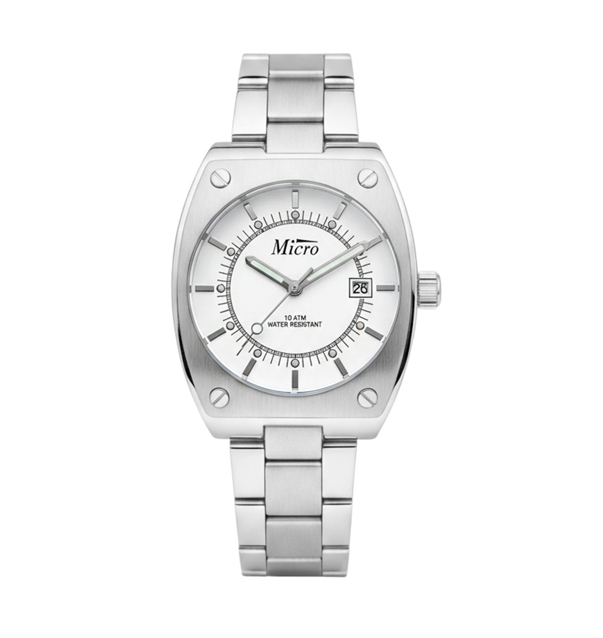 El Reloj Micro Acero Esfera Blanca combina diseño actual y fiabilidad en una pieza de estilo sobrio y elegante.